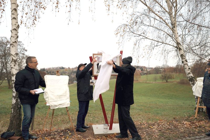 Siegfried Herold und Ulrich Kretzschmar enthüllen die Installation